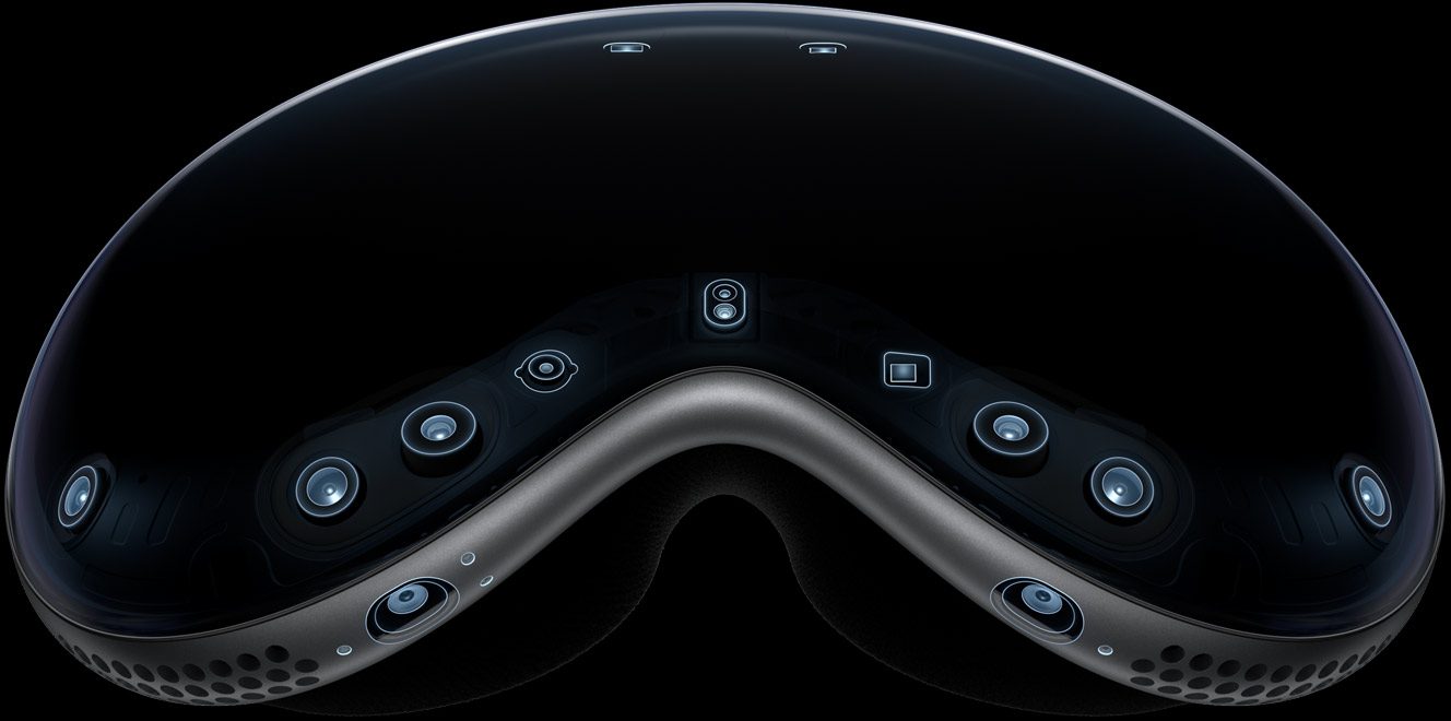 Eye Sight. An outward display reveals your eyes while wearing Apple Vision Pro, letting others know when you are using apps or fully immersed.